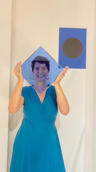 Manuela ha realizzato una serie di carte e stampe unendo le forme del triangolo del quadrato e del cerchio, giocando e assemblando geometrie e colori